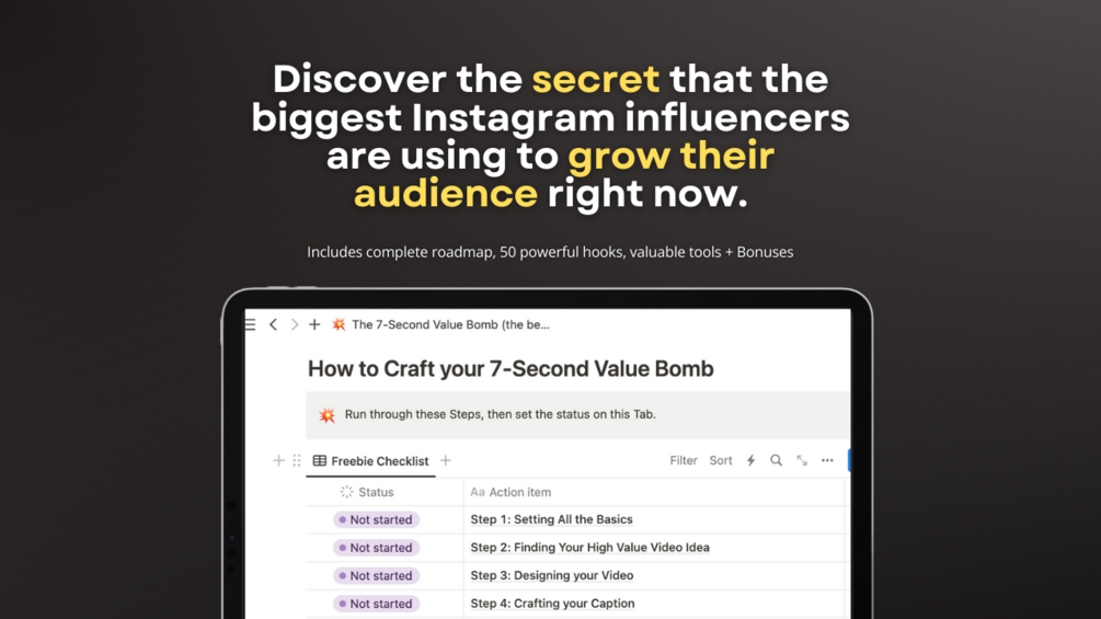 ✅ A list of 50 powerful hooks that you can use to exponentially boost your views